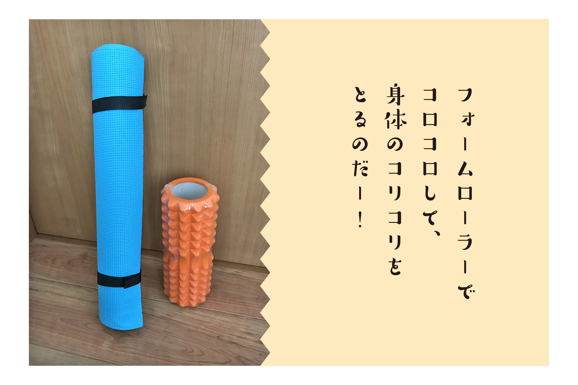 フォームローラーをコロコロして、身体のコリコリを取るのだ!