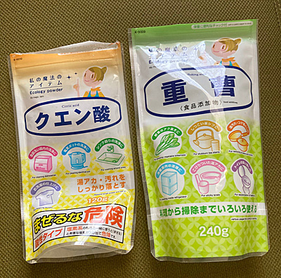 いくつかのサイトを参考に、クエン酸漬け+重曹漬けをやってみることに。