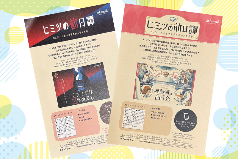 タカラッシュ「ヒミツの前日譚」シリーズ「No.07とある美術館から消えた物」と「No.08とある女の子のさやかな休日」を解いてみた感想。